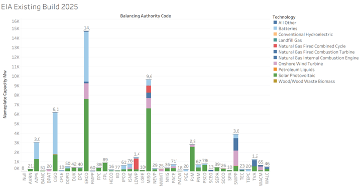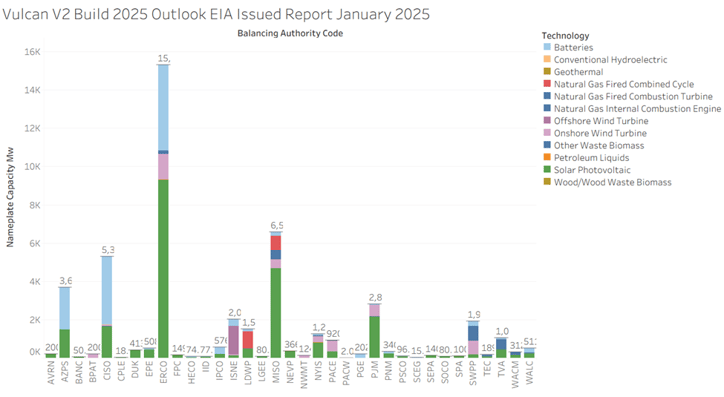As always, the "devil is in the details." Last year, our coverage was concentrated primarily on the major power markets, specifically ERCOT and PJM. When we break down the build by Balancing Authority (BA), we see that the initial EIA 860M forecast for ERCOT was overly ambitious at 20 GW. In contrast, Vulcan V2 projected amore grounded 15 GW vs 14 GW actual.